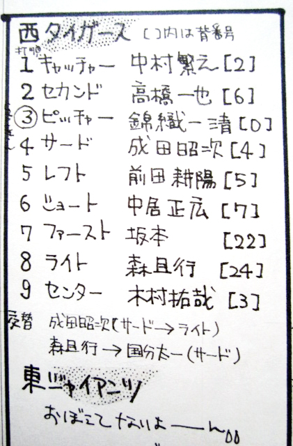 【い】はっきりゆって私、昭次ってもう少し野球上手いと思ってたの。どころがどっこい。前半あんなに点をとられてしまったのは、はっきりゆってあの人の暴投のせいではないかと…(汗)。GENJIは皆上手いんだよね。